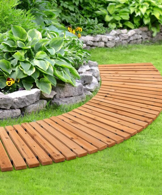 6FT Wooden Garden Pathway, Curve Roll Out Anti-Slip Walkway for Outdoor , Weather-Resistant Flooring Path, Easy Unfold Instant Boardwalk Path for Lawn Patio Yard Deck (6FT, Log Color)